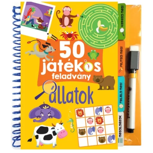 A 50 játékos feladvány – Állatok azoknak a gyerekeknek szól, akik rajonganak az állatvilágért, és szívesen próbálják ki magukat különféle, rövid idő alatt megoldható kihívásokban. A kötetben 50 változatos rejtvény vár: köztük olyan típusok, amelyek a szókinccsel, logikával, térbeli tájékozódással és figyelemösszpontosítással dolgoztatnak, illetve vannak látásélességet és mintafelismerést igénylő feladatok is. A fókusz minden oldalon az állatokon van – a gyerekek a játék során találkoznak különféle élőhelyekkel és viselkedési formákkal, miközben észrevétlenül rendszerezik a tudásukat: mi mivel függ össze, mi hova illik, mi alapján érdemes csoportosítani. A kötet erőssége a rövid, jól körülhatárolt feladategyégekben rejlik: minden oldal önálló sikerélményt ad, így utazás közben, várakozáskor vagy akár egy délutáni pihenőben is elővehető. A mellékelt letörölhető tollnak köszönhetően bátran lehet próbálkozni: ha a megoldás nem tetszik, egy mozdulat és kezdődhet elölről. Ez a „hibázz nyugodtan” szemlélet magabiztosságot ad, csökkenti a frusztrációt, és nyitottabbá teszi a gyerekeket az új stratégiák kipróbálására.