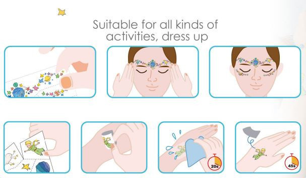 Szereted A kis herceg mesét? Akkor ezt a készletet neked találták ki! Az arcmatricák és tetoválások gondoskodnak arról, hogy kedvenc motívumaid megelevenedjenek a bőrödön! A készletben ráadásul nagyobb méretű arcmatricák is találhatók, így akár bevonhatod anyát vagy apát, esetleg a testvéredet is a játékba.