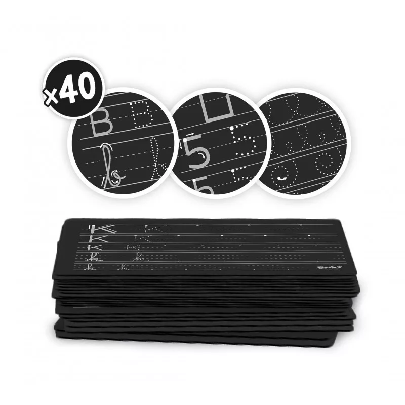 Ezen kívül kiválóan alkalmas a görbe és egyenes vonalak vezetésének elsajátításához is. A játékhoz tartozó minta lapokat a tábla alá kell elhelyezni és a rajtuk szereplő vonalakat átmásolni. A törlés és javítás akárcsak a digitális rajztábla esetében, egyetlen gomb megnyomásával könnyedén lehetséges. A játéktáblához speciális írószerszám is tartozik, mely extra markolatot kapott, hogy segítségével kialakuljon a helyes ceruza tartás.