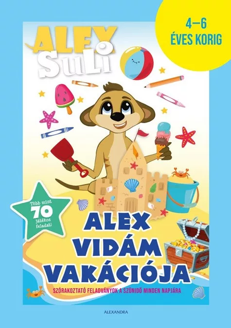 Ó… IÓ… CIÓ… ÁCIÓ… KÁCIÓ… AKÁCIÓ… Kezdődjön a vidám vakáció! Alex, az Alex Suli kíváncsi szurikátája a nyári szünidő alatt sem unatkozik! Tarts vele, és ismerkedjetek meg együtt a színekkel, számokkal, betűkkel és formákkal! Alex rengeteg mókás fejtörővel, színezővel és játékos feladattal készült neked, hogy remekül teljen a nyarad! Az Alex vidám vakációja szórakoztató módon fejleszti a megfigyelőképességet és a logikus gondolkodást, így segít, hogy a szünidő leteltével a gyermekek újult lendülettel térhessenek vissza az óvodába. Sőt, a foglalkoztatófüzet feladatai iskola-előkészítőnek is ideálisak lehetnek.