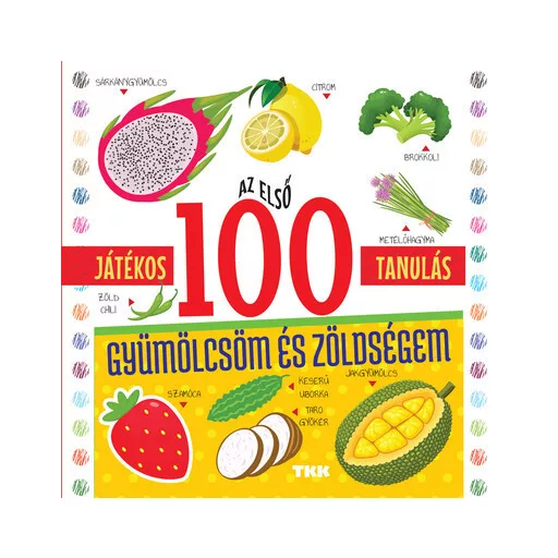 Színes ízek és formák világa vár a kicsikre! A Játékos tanulás sorozat új kötete játékos módon ismerteti meg a gyerekeket a gyümölcsök és zöldségek gazdag választékával. A könyvben 100 gondosan válogatott, vidám rajz segíti a felismerést és a tanulást – az ismert almától és banántól egészen a különlegesebb finomságokig. Minden kép alatt szerepel a megnevezés, így a gyerekek könnyedén bővíthetik szókincsüket, miközben megismerkednek az egészséges ételek sokszínű világával. Az egyszerű, jól áttekinthető illusztrációk sikerélményt adnak, és ösztönzik a kíváncsiságot. Tanuljunk együtt, játékosan – minden nap egy új ízzel és színnel!