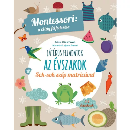 A Montessori-pedagógia elveit követve ajánl a könyv játékokat és feladatokat, amelyek kifejezetten a legkisebbek kognitív képességeinek fejlesztését szolgálják. A magukkal ragadó és szórakoztató játékok segítségével a gyerekek sok mindent tudhatnak meg a váltakozó évszakokról.