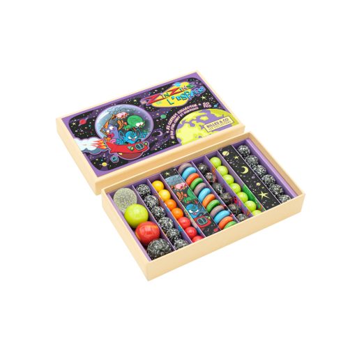 A Space Goofs szett 60 kiváló minőségű üveggolyót, kavicsot és lövedéket tartalmaz, melyek minden darabja az űrutazás és az idegen galaxisok varázsát hozza el: