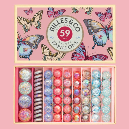 A Billes & Co a környezetbarát termékek iránti elkötelezettsége révén újrahasznosítható kartonból és papírból készült dobozban kínálja ezt a szettet. Az illusztrált pillangómotívumok tovább fokozzák az élményt, és kiváló ajándékként is megállják a helyüket, amely minden korosztálynak örömet szerez.