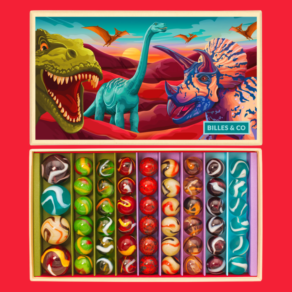 Képzeld el, ahogy a gyermeked a nappali közepén egy vulkáni tájat vagy egy áthatolhatatlan őserdőt épít fel. A vérvörös és izzó narancs golyók a hömpölygő lávát, a mélyzöld és mocsárbarna darabok pedig a Diplodocusok életterét idézik. A készletben található csavart mintájú és pöttyözött üveggolyók úgy néznek ki, mint a felfedezésre váró különleges dinoszaurusztojások. Ez a vizuális világ remekül passzol a dínós ágyneműinkhez és a természetes alapanyagú játéktárolóinkhoz, teljessé téve az őskori hangulatot.