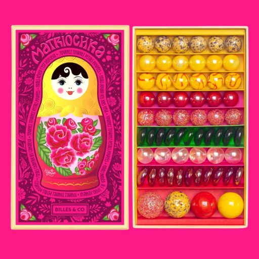 A Billes & Co gondoskodik a fenntarthatóságról is, ezért a Pink Katerina Matriochka szett újrahasznosítható kartonból és papírból készült, így nem csupán játék, hanem környezettudatos választás is. A részletesen illusztrált dobozok igazi műalkotások, amelyek a kollekció különlegességét emelik ki, és örök értéket képviselnek.