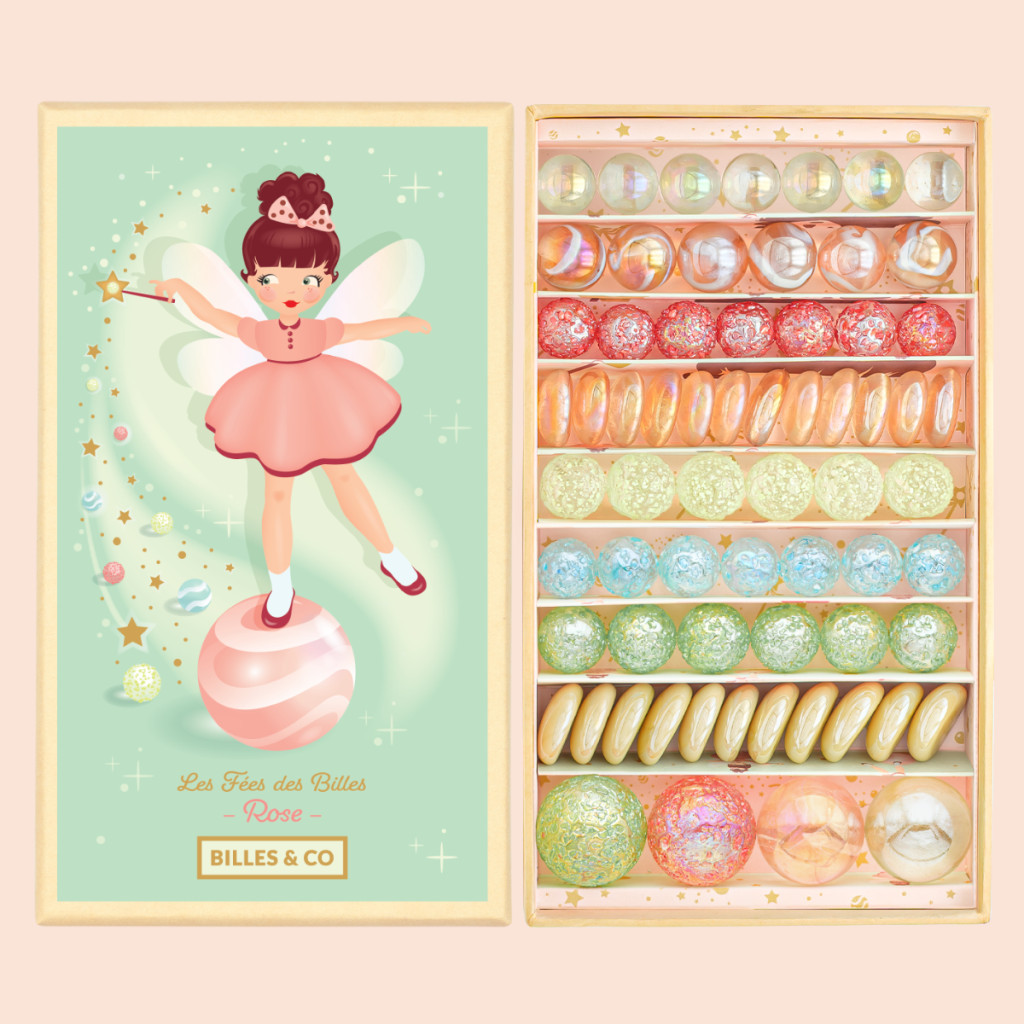 A Rose Fairy szett 71 darab üveggolyót, kavicsot és lövedéket tartalmaz, amelyek a tündérvilág legszebb színeit és formáit hozzák el:
