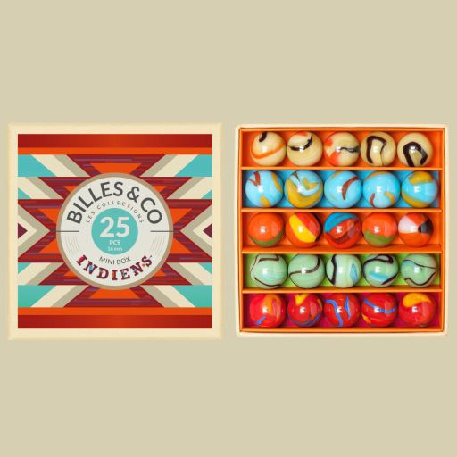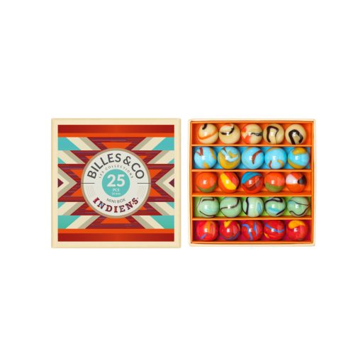 Az American Natives szett 25 különböző üveggolyót tartalmaz, öt egyedi színváltozatban, amelyek segítségével a gyerekek megtapasztalhatják a természet és a hagyomány ihlette színek szépségét. A golyók Franciaországban, kézzel válogatva és rendezve kerülnek a dobozba, garantálva ezzel a prémium minőséget és a játék különleges élményét. Ez a szett nemcsak játékra, hanem történetek kitalálására és kreatív játékra is ösztönöz.