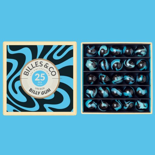 Ez a szett a Billes & Co legikonikusabb darabja, amely különlegességet, minőséget és stílust egyesít. Minden üveggolyót gondosan válogatnak és kézzel rendeznek Franciaországban, így garantáltan prémium minőséget biztosít. A Billy Gum szett színes üveggolyói szabadjára engedik a gyerekek képzelőerejét, miközben szórakoztatják és fejlesztik a finommotoros készségeket is.