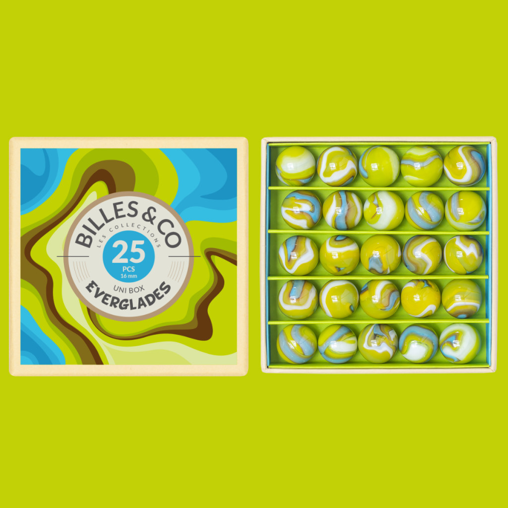 Az Everglades szett minden darabja gondosan válogatott, Franciaországban, kézzel rendezve készül, hogy minőséget és egyedi megjelenést biztosítson. Ezek a különleges színű és mintázatú golyók kreatív játékra ösztönzik a gyerekeket, és fejlesztik a képzelőerejüket, miközben lehetőséget adnak a természet iránti érdeklődés kibontakoztatására.
