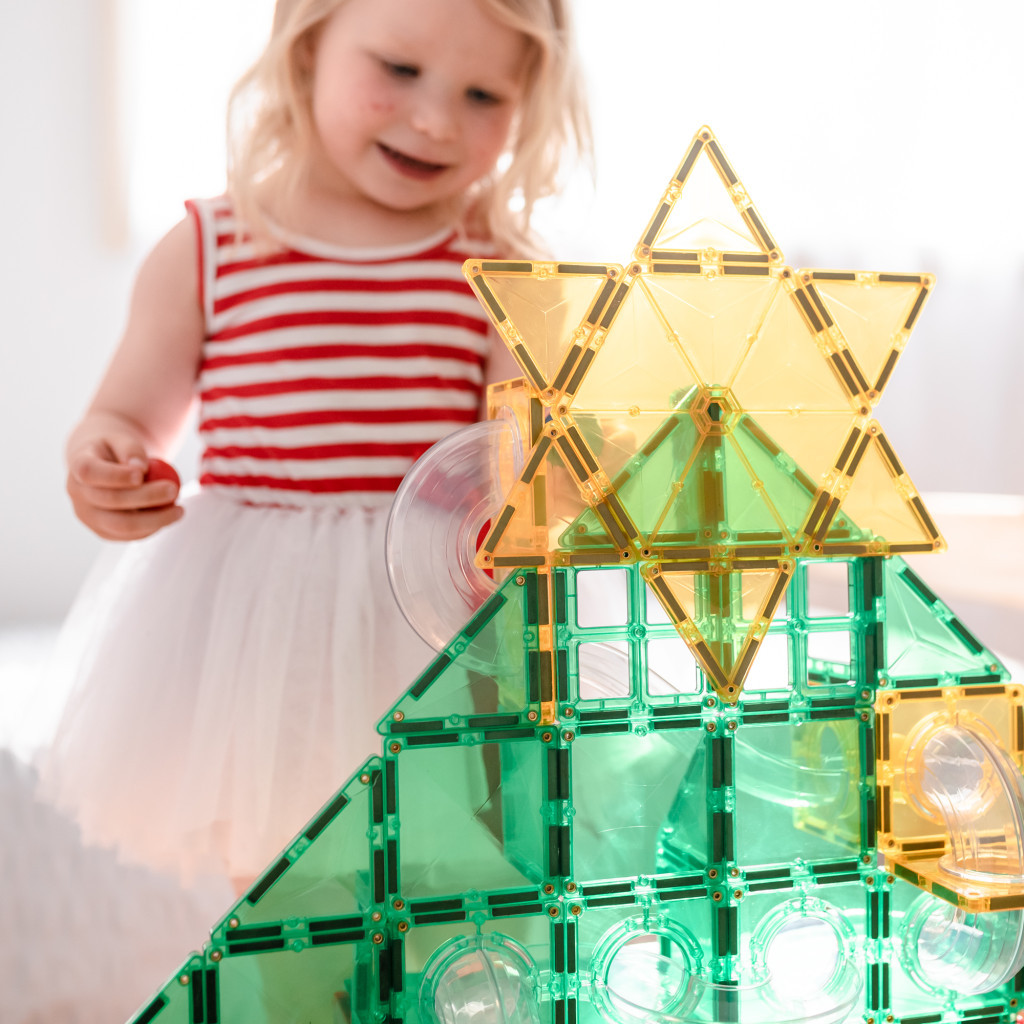 Keresed azt a különleges ajándékot, amely nemcsak a karácsonyfa alatt mutat jól, hanem maga is a karácsonyfa? Ez a limitált kiadású Connetix szett a mágneses építés és a golyópályák legszebb ünnepi ötvözete. A készlet segítségével egy hatalmas, működő golyópályát rejtő karácsonyfát építhettek, ahol a díszek helyett a golyók száguldanak.