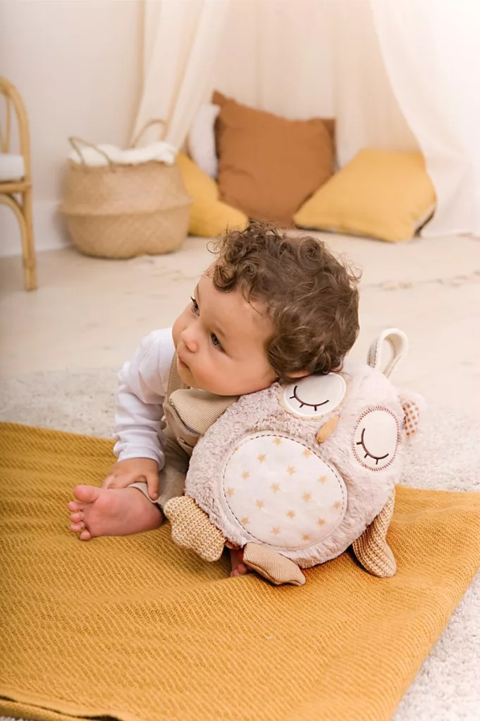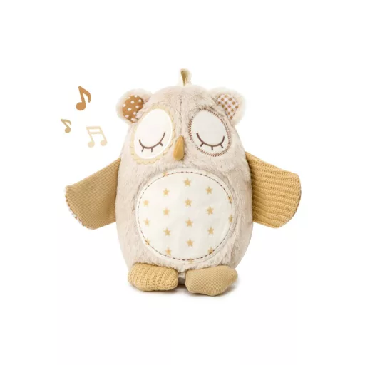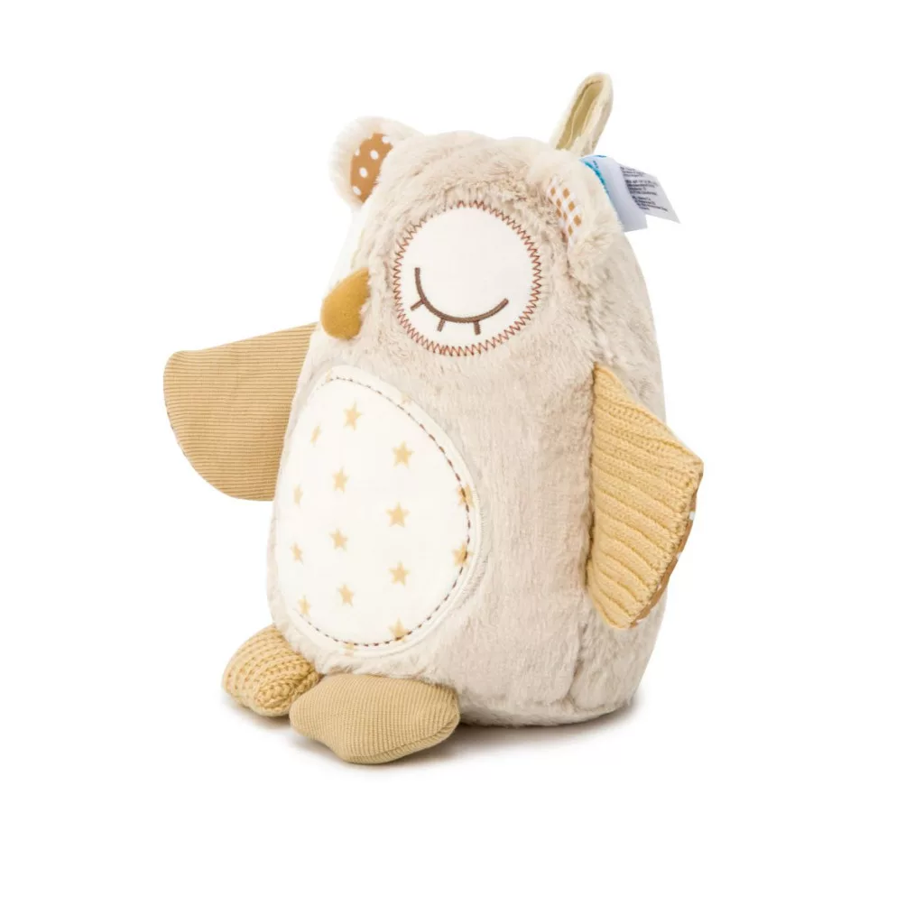 A tépőzáras rögzítő lehetővé teszi, hogy a bagoly könnyedén rögzíthető legyen a kiságyhoz, babakocsihoz vagy autósüléshez, így mindig a baba közelében maradhat. A plüss figura mosógépben is mosható, a hangmodul könnyen eltávolítható.