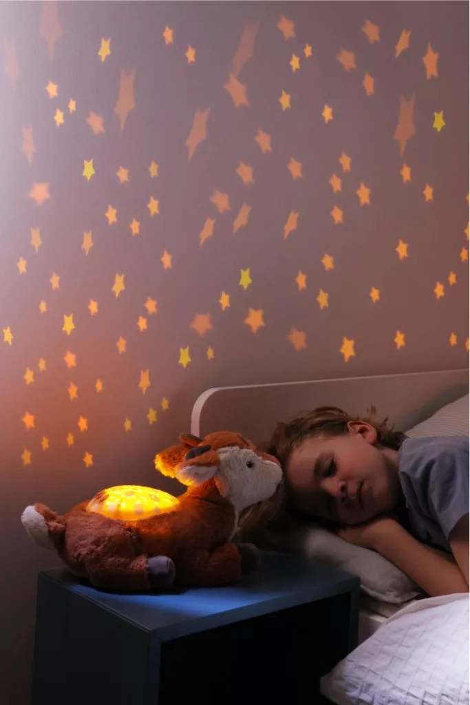 A csillagképes vetítés elvonja a gyermek figyelmét a sötétségtől, és megnyugtatja őt. A nyugtató színek és a csillagos égbolt segítenek a könnyebb elalvásban.