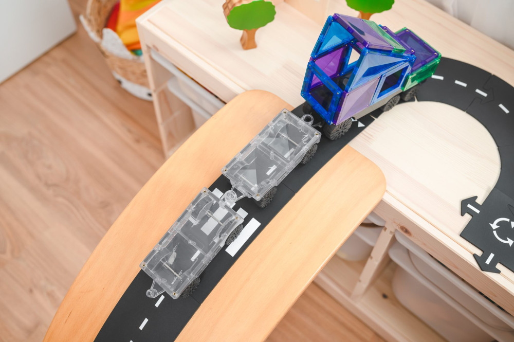 A Connetix Rainbow Transport Pack könnyen kombinálható más Connetix készletekkel, így még nagyobb és összetettebb járműveket és építményeket hozhattok létre.