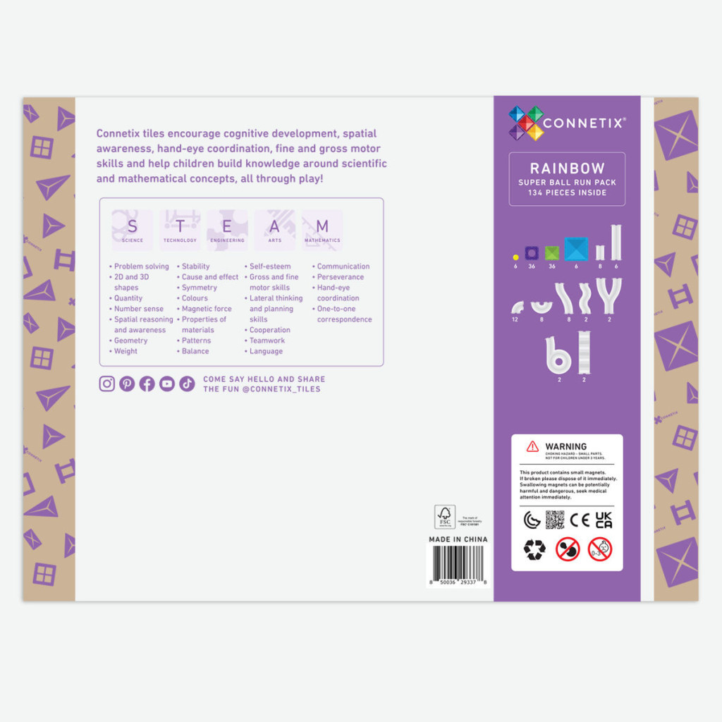 A Connetix Super Ball Run Pack – 134 darabos szett egy olyan játékélményt kínál, amely egyszerre lenyűgöző, tanulságos és teljesen nyílt végű. Ez a limitált kiadású szivárványszínű készlet tökéletes választás minden korosztálynak, akik szeretik a kihívást, az építést, és a látványos megoldásokat.