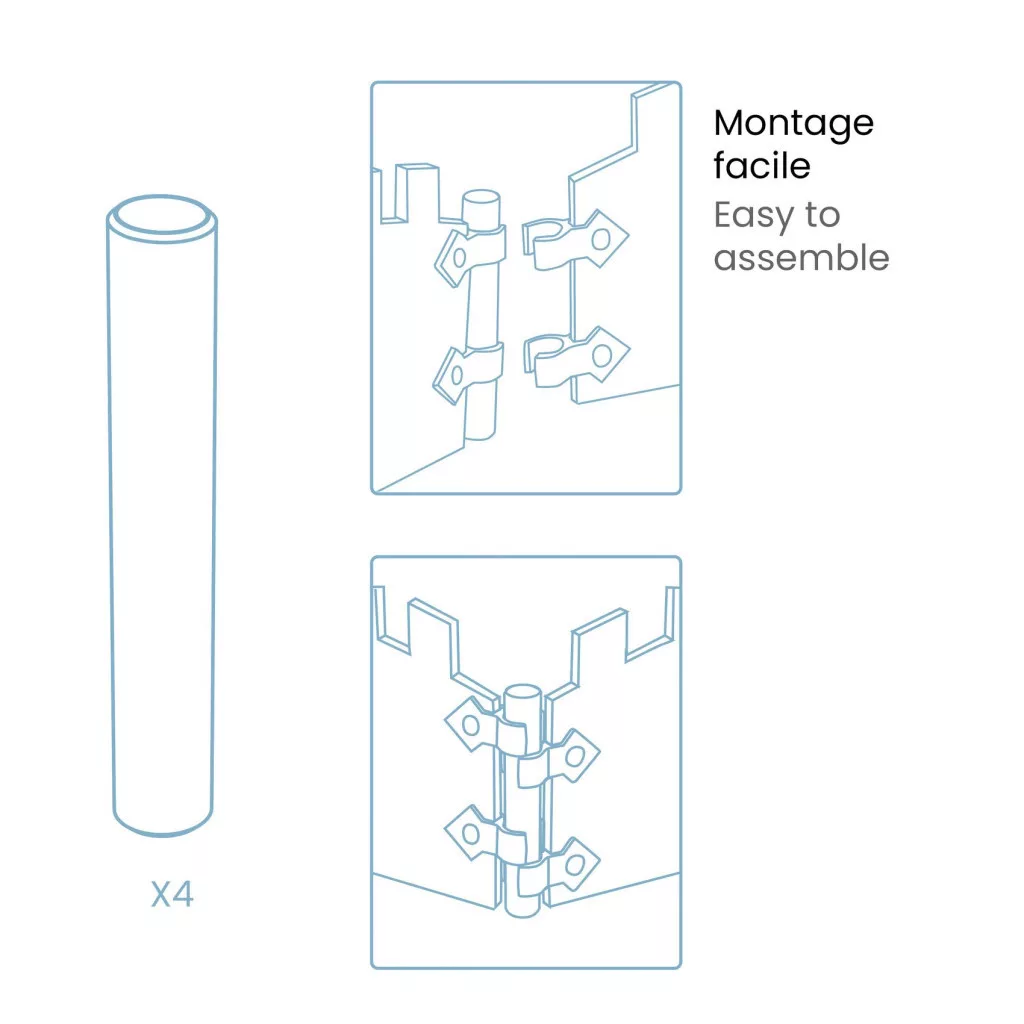 - Egyszerű összeszerelés: A stabil faszerkezet csavarok nélkül, könnyedén összeállítható a kisebb modulokból, így szinte azonnal kezdődhet a játék.