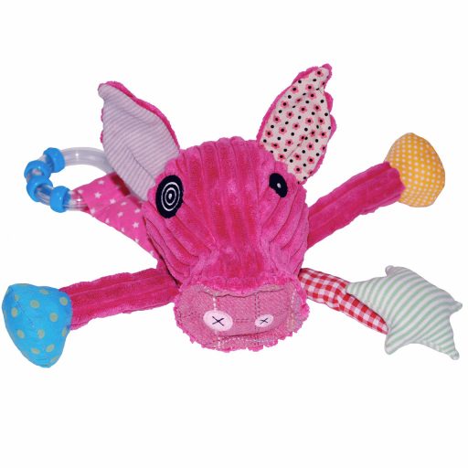 Különböző szövetekből, finom anyagokból álló rezegni, vibrálni képes figura, emellett nyomkodásra csörög, zizeg, sípol...felfedezésre vár.