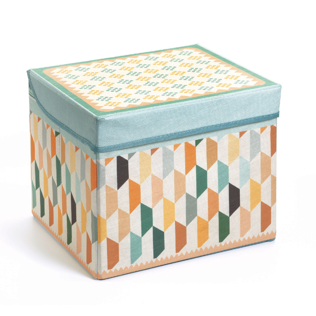 Színes, keleti stílusú játéktároló doboz. Szép dekorációs tárgy, hogy mindennek legyen helye! Fából készült szerkezetének köszönhetően szilárd gyermekülőkévé alakítható (max. terhelhetősége: 30 kg).