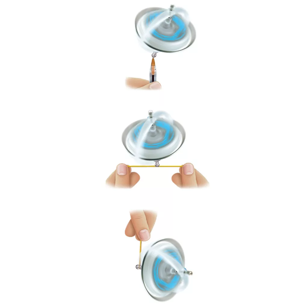 Didaktikai precíziós műszer, amely kihívja a gravitációs erőt, és amíg pörög egyensúlyban marad. Piros, vagy kék színű LED világítási rendszerrel felszerelt. A forgás gyorsasága a felvillanó ledek által kirajzolt mintázatot játékosan módosítja. Működtetése, felpörgetése a csomagban található zsinorral történik.