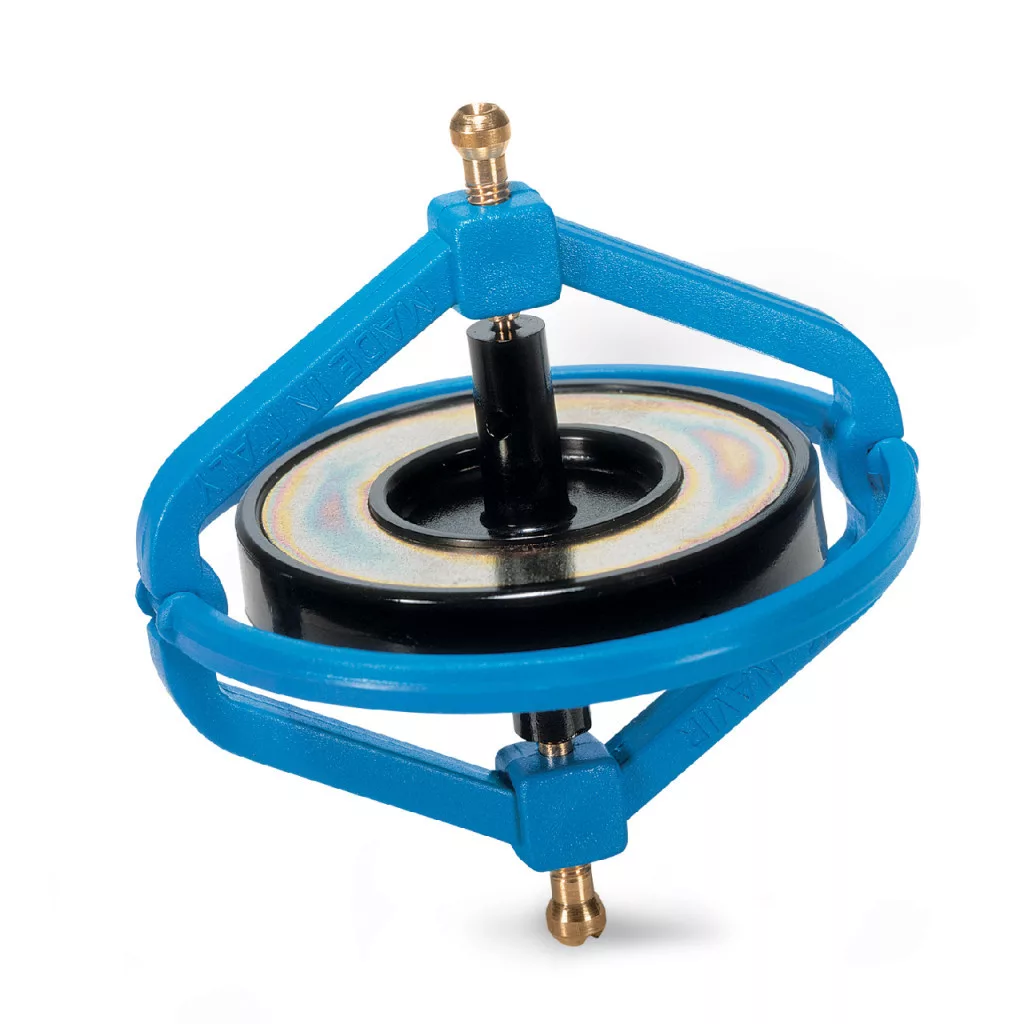 Precíziós oktató eszköz. A giroszkóp (pörgettyű) a fizikából ismert perdületmegmaradás törvényét demonstráló eszköz.