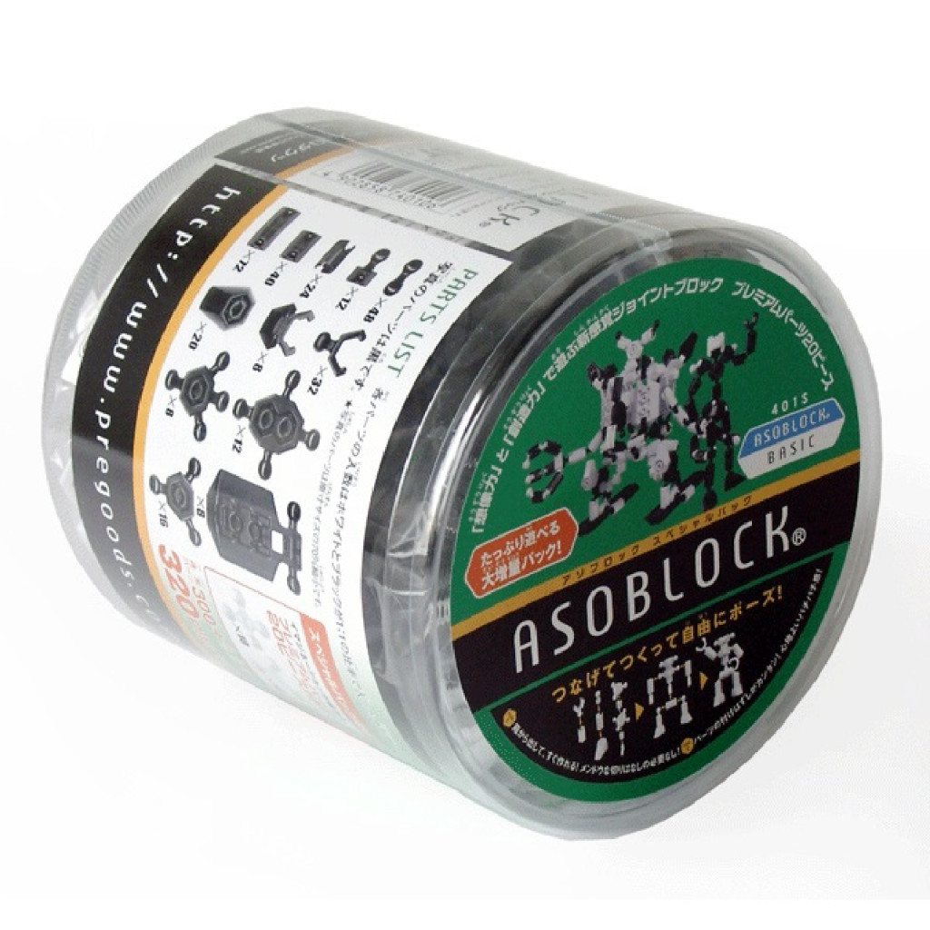Végtelen számú összekapcsolási lehetőséget adó építőjáték. Kombinálható a többi alapcsomaggal, és az egyéb Asoblock készletekkel. Ösztönzi a képzelőerőt, a logikus gondolkodást és a kreativitást. Az építőelemek formai kialakítása lehetővé teszi a többféle összeépítést. Az elemek gömbfejből és gömbfejtartó részekből gömbcsuklós szerkezet felépítését teszik lehetővé, így a csatolt építőelemek gyakorlatilag minden irányban elforgathatóak.