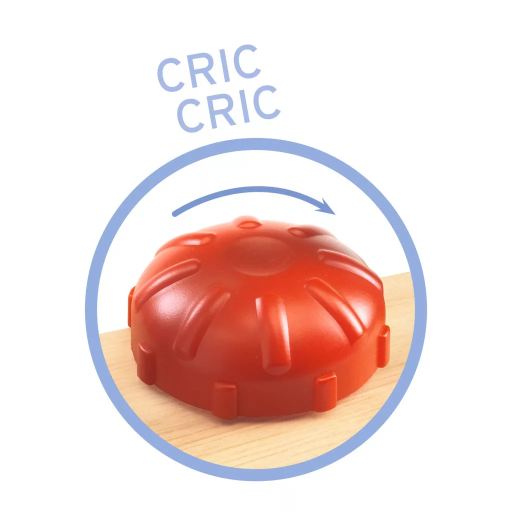 - Biztonságos utánzás: A hőfokszabályzó gomb elforgatható, így a gyerekek élethűen, mégis kockázatmentesen játszhatják el a felnőttek teendőit.
