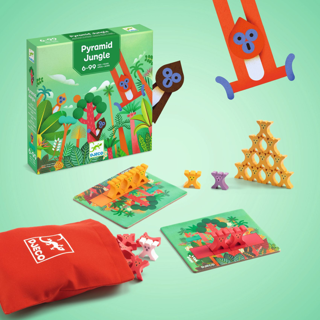 Djeco Társasjáték - Majompiramis - Pyramid Monkey – Cirkuszi izgalmak a dzsungelben