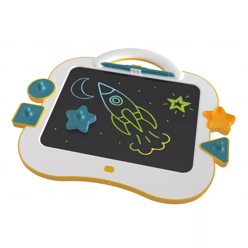 Írj, rajzolj és pecsételj újra és újra anélkül, hogy piszkos lenne a kezed vagy a ruháid! Nyomd meg a törlés gombot, és kezdd elölről! Az ergonomikusan kialakított tollat úgy használhatod, mint egy ceruzát. Két rajzolásra alkalmas hegye van: egy vékony és egy vastag. A táblagép zárolható, hogy a rajz ne törlődjön. A súlya mindössze 500 g, így könnyen hordozható. Többszínű képernyő.