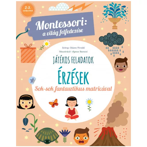 A Montessori-pedagógia elveit követve ajánl a könyv kreatív játékokat és feladatokat. Labirintusok, írásos-rajzolós feladatok és sok-sok matrica segít a gyerekeknek érzelmeik felismerésében és megértésében, miközben még jól is szórakozhatnak.