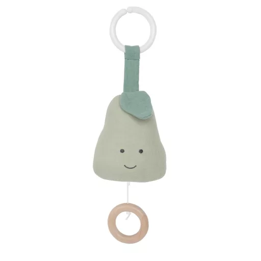 A Jabadabado textil felhúzható zenélő játéka most egy édes körte alakjában lett megtervezve. A játék nyugodt dallamot játszik (Brahms altatódal) és könnyen rögzíthető a rugalmas műanyag gyűrű segítségével. A zene szórakoztatja és stimulálja a babát, miközben álomba szenderül. Nagyszerű ajándék újszülöttnek babalátogatás alkalmából vagy akár keresztelőre.