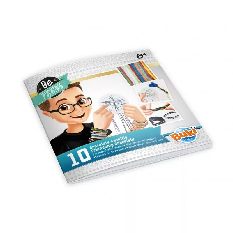 Tartalma: 1 habszivacs korong, 1 tapadókorong, 14 színű pamutszál, 3 színű viaszos zsinór, bézs velúr zsinór, barna zsinór, 1 műbőr karkötő, 30 gyöngy, 1 horgonyvarró, 3 ezüst gyűrű, 2 karmos kapocs, 1 rákcsat, 1 műanyag tű.