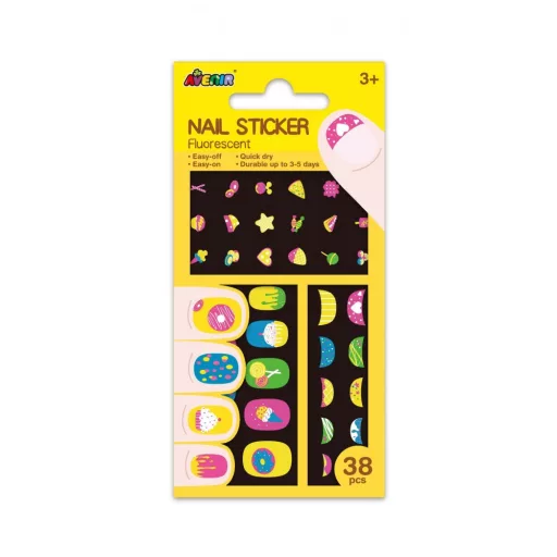 38 db-os fluoreszkáló körömmatrica készlet az Avenir márkától.