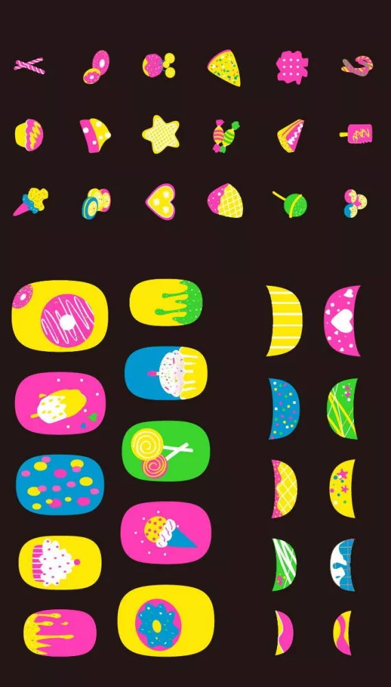 Fluoreszkáló körömmatrica szett, Édességek Avenir