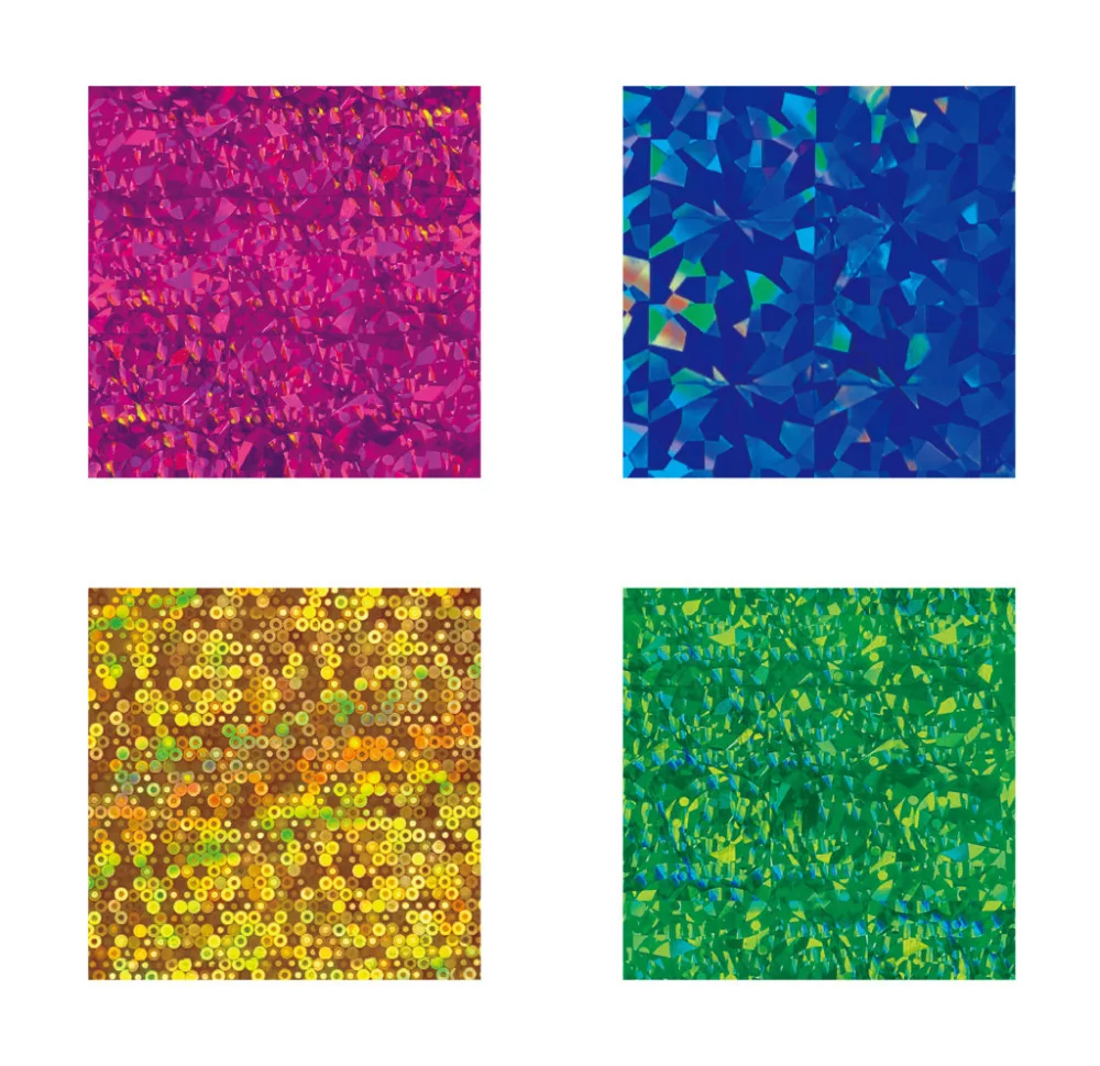 Húzd le a védőfóliát a képekről, helyezd a fóliapapírt a kép ragacsos területére, majd ujjaiddal nyomkod rá a fóliát. A csillogó fólia varázslatos módon átkerül a képekre!