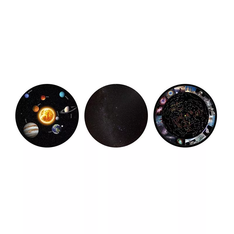 LED-fénye és lencséje nagyfelbontású képeket vetít a falra, miközben a planetárium forog. Három lemezt tartalmaz a csomag: a Tejútrendszert, a csillagképeket és a Naprendszert.
