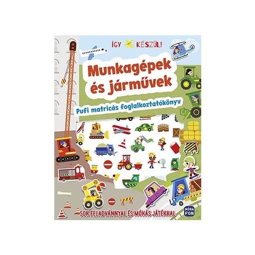 Kedvenc munkagépeid, vízi, légi és szárazföldi járműveid várnak ebben a mozgalmas foglalkoztatókönyvben!