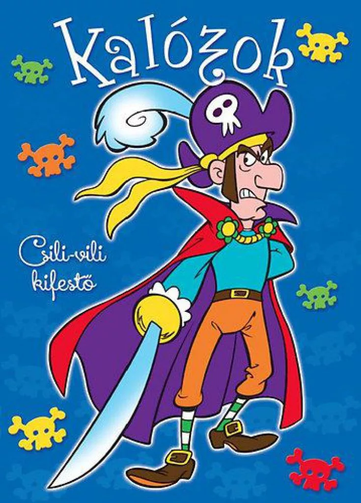 Ó, azok a mord, mégis muris kalózok: Félszem Bill, Vörös Szakáll, Őrjöngő Jack, Faláb Kapitány és a többiek most kívül-belül csillogó, vidám kifestővel várják a kicsiket egy kézügyesítő jó kis szórakozásra!