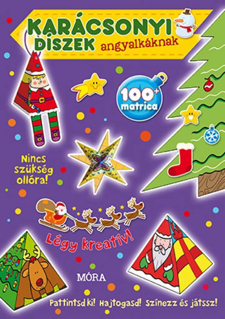Nincs jobb, mint együtt játszani a gyerekekkel, főként, ha közben bűbájos karácsonyi díszeket is készíthettek! Kipattintható egyszerűen összerakható díszek. Nincs szükség ollóra. Légy kreatív! Pattintsd ki! Hajtogasd! Színezz és játssz! Több mint 100 matrica