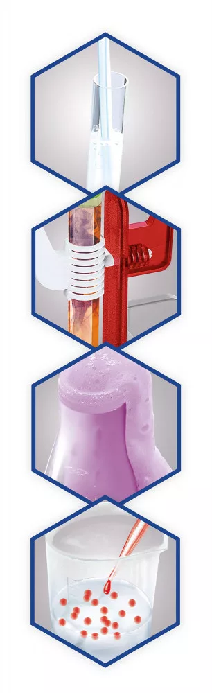 A készlettel 200 kísérlet lehet elvágezni bármely, a konyhában található biztonságos összetevők felhasználásával.