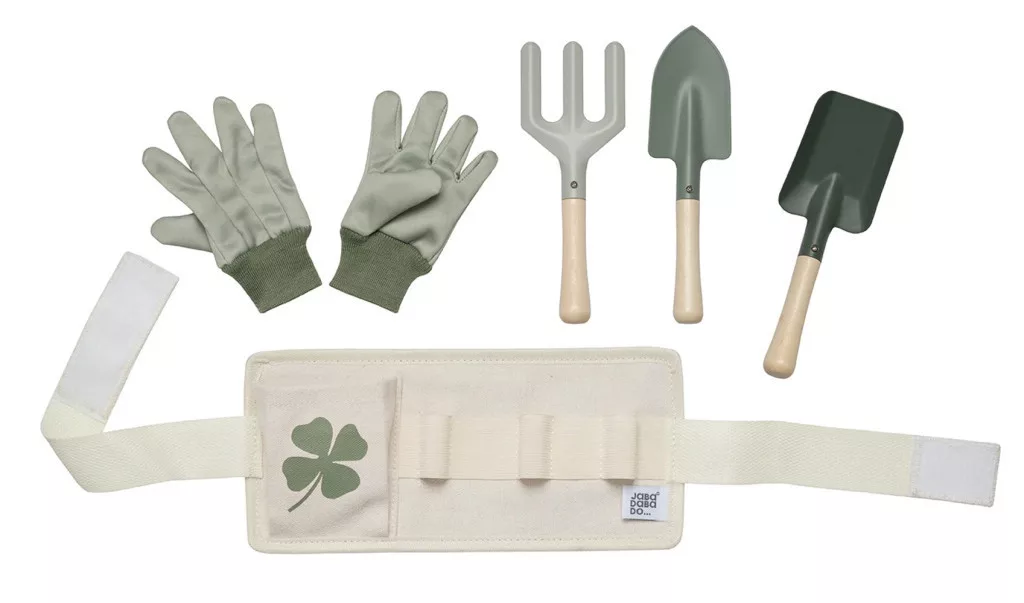 Ez a kerti szerszámos öv tökéletes kiegészítő a kis kertészek számára! A készlet mindent tartalmaz, ami a szórakoztató és tanulságos kerti kalandokhoz szükséges. A csomag része egy állítható öv, amelyben helyet kaptak a mellékelt szerszámok. Az összes szerszám fából készült nyéllel rendelkezik, és gyönyörű zöld árnyalatú. A kerti szerszámos övvel könnyen hordozható minden, ami az ültetéshez és a növények gondozásához szükséges. Tökéletes azoknak a gyerekeknek, akik szeretnek a szabadban lenni és segíteni a kertben!