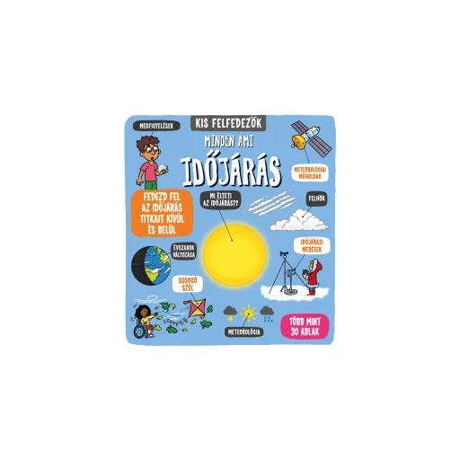 A Kis felfedezők - Minden, ami időjárás egy izgalmas ismeretterjesztő könyv, amely játékos módon mutatja be a gyerekeknek az időjárás működését. Megismerhetik a napsütés, az eső, a szél és a hó kialakulását, valamint megtudhatják, hogyan változnak az évszakok.