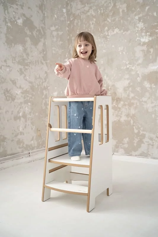 A tanulótorony nemcsak megkönnyíti a szülők dolgát, hanem ösztönzi a gyermek önállóságát, javítja a kézügyességet, és közben megalapozza a közös családi szokásokat. Az együtt töltött idő segít a kicsiknek új ízeket kipróbálni, új szerepeket tanulni, és természetessé teszi az otthoni feladatokba való bevonódást.