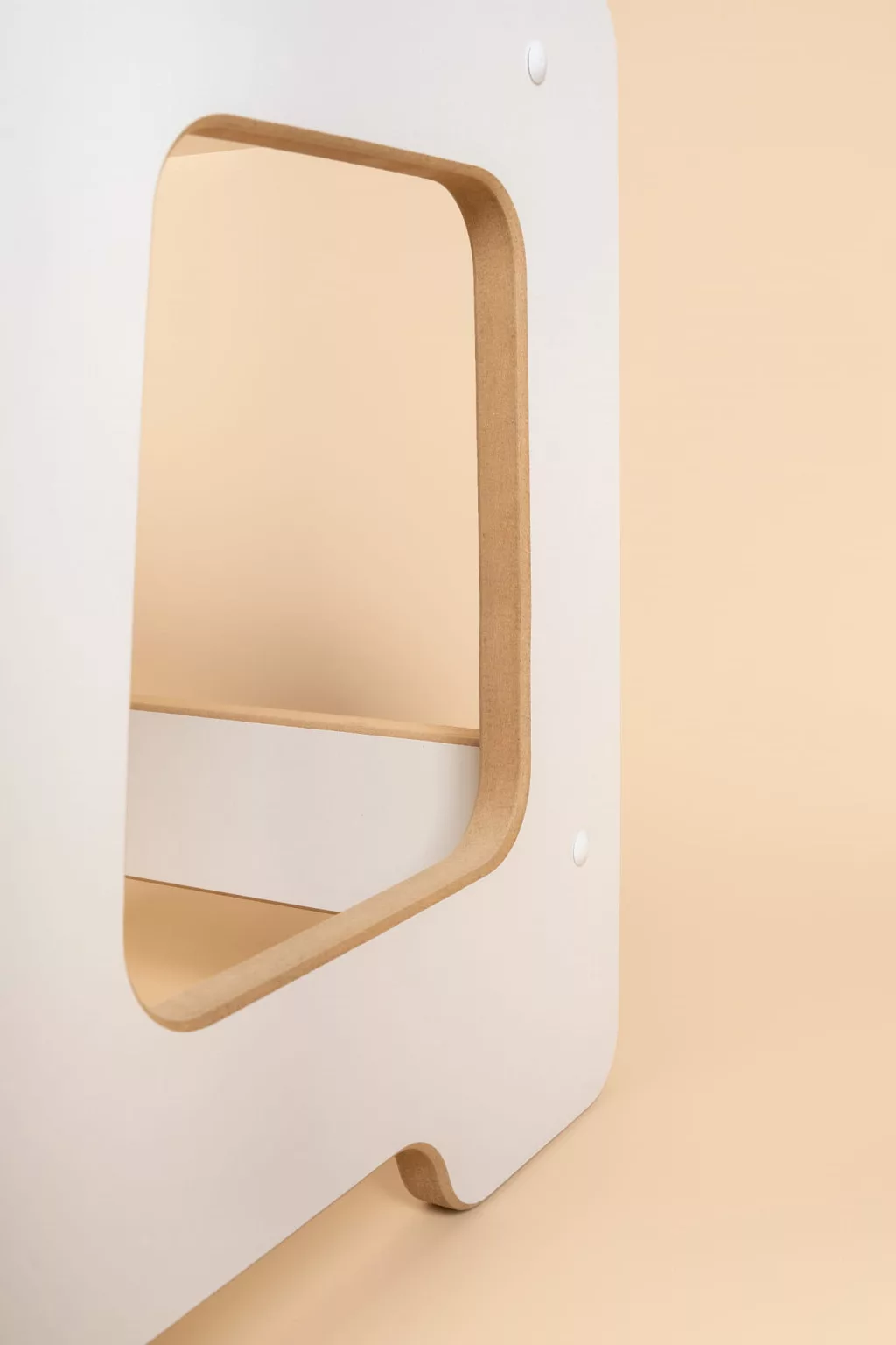 A mini fellépő egyszerre visszafogott és modern – a natúr fa élkialakítás és a fehér felületek elegáns megjelenést biztosítanak. Bármilyen enteriőrbe könnyen illeszkedik, és nem zavarja meg a tér harmóniáját.