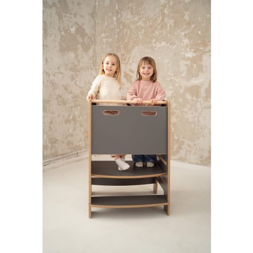 Ez a tanulótorony úgy lett kialakítva, hogy két gyermek is kényelmesen és biztonságosan elférjen rajta. Akár testvérek, akár barátok, a közös tevékenység fejleszti a társas készségeket, a csapatmunkát és az egymásra figyelést. Egy közös sütés vagy vacsorakészítés nemcsak játék, hanem értékes nevelési lehetőség is.