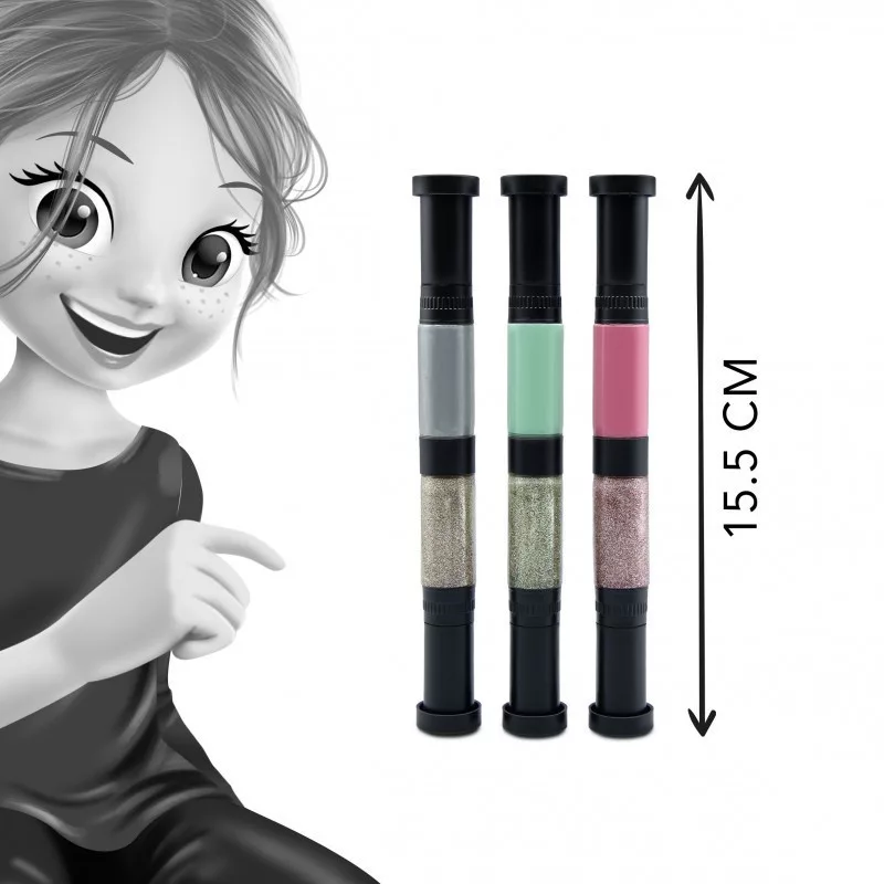 2-az egyben tollak, melyek segítségével igazán divatos körmöket készíthetsz magadnak. Először vidd fel a kiválasztott színt, majd a tollhegy segítségével rajzolj mintákat! A csomagban 3 szín (ezüst, rózsaszín és zöld) és csillogós változataik találhatók, így összesen 6 féle körömlakkal dekorálhatod körmeidet. A praktikus tubusos kialakításnak köszönhetően ráadásul mindenhová könnyedén magaddal viheted kedvenc árnyalataidat!