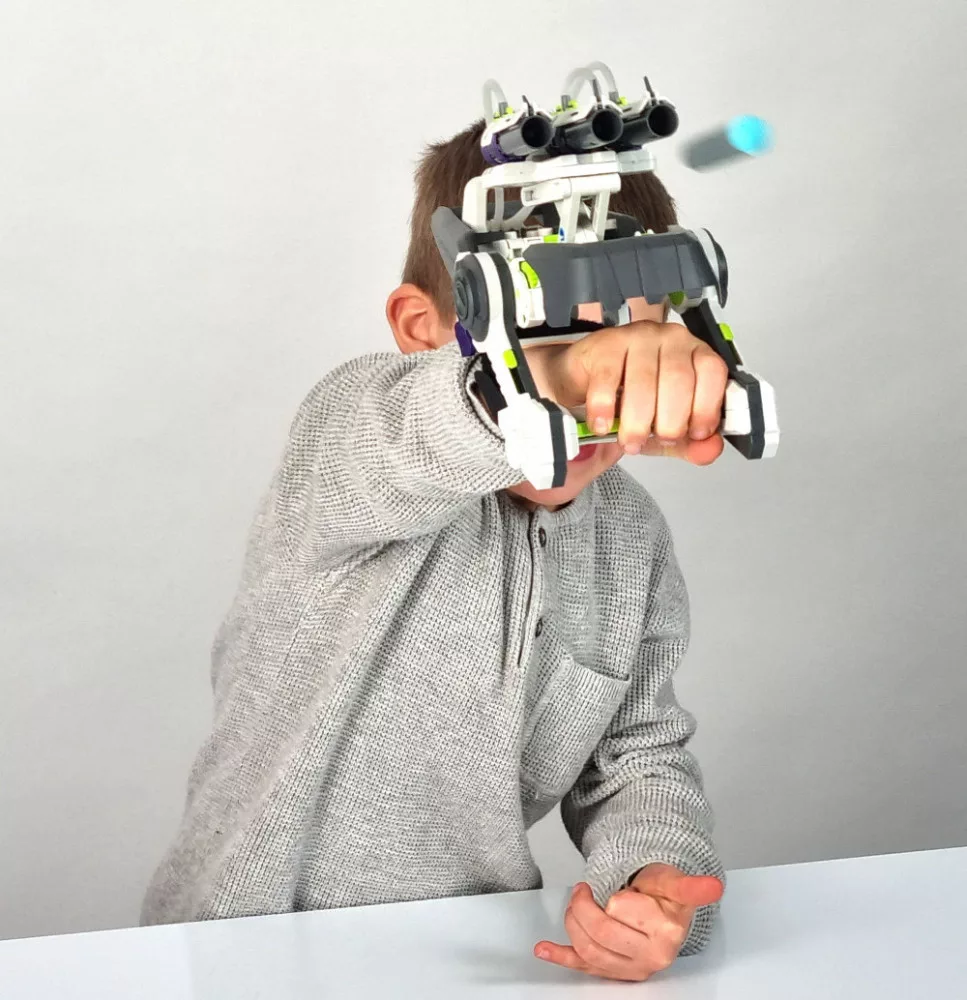 Szereld össze az alkatrészeket és építs egy szuper, levegővel működő szivacskilövő kezet! Irányítsd a saját kezeddel a játékot, pumpáld, hogy kilőhesd a nyilakat. A szivacslövőt balkezesek és jobbkezesek is egyaránt használhatják. A csövek iránya mozgatható, hogy akár több szögből is célozni tudj!