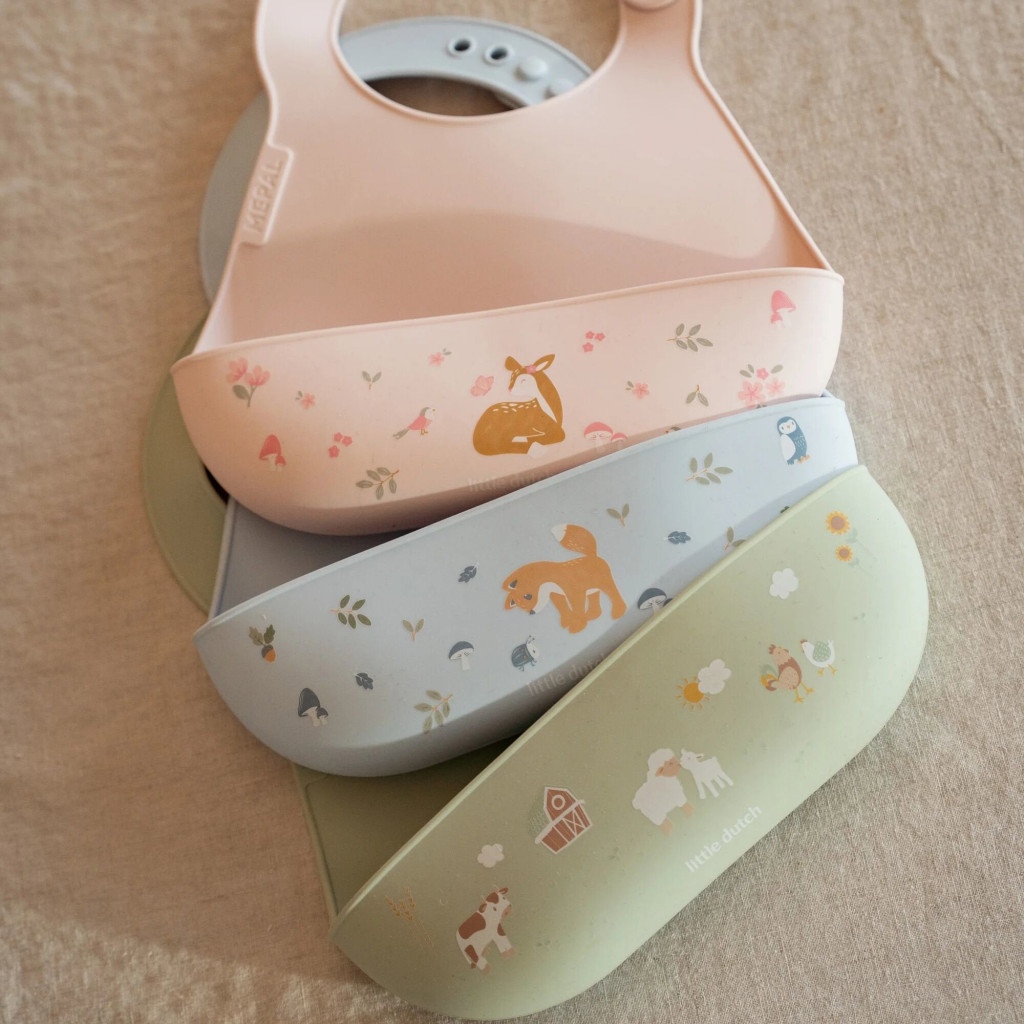A Little Dutch szilikon előke - Forest Friends tökéletes társ a kisgyermekek önálló étkezésének támogatásában. A babaagynemubolt.hu szakértői által kínált előke nemcsak védi a ruhákat a foltoktól, hanem játékos, erdei állatos mintájával még élvezetesebbé teszi az étkezéseket.