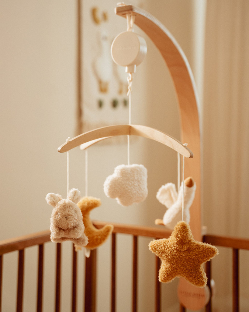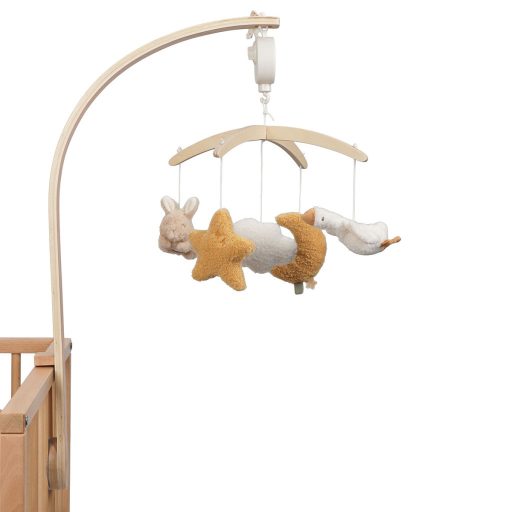 A nyuszi, liba, hold és csillagok szinte táncolnak a kiságy fölött, segítve, hogy a babád biztonságban, megnyugodva csússzon bele az éjszakába.