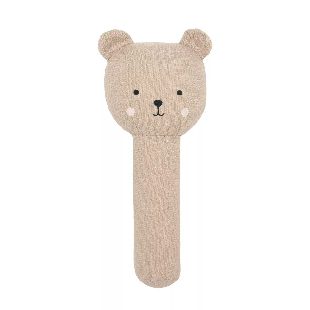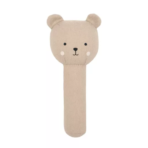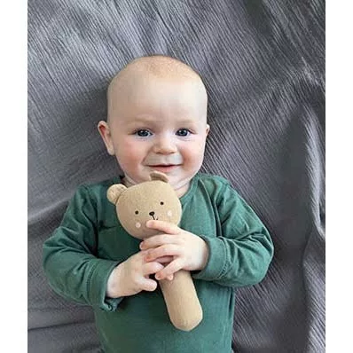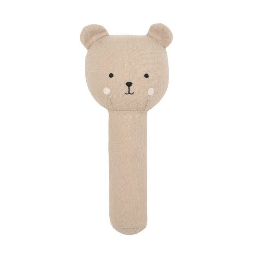Imádnivaló kézi csörgő, amely könnyedén megfogható és tartható a kisbabák apró ujjaival. Ez a legpuhább textilből készült, legaranyosabb macis csörgő lesz a baba kedvenc játéka. A gyengéd csörgő zaj tökéletes érzékszervi stimuláció a csecsemők számára.