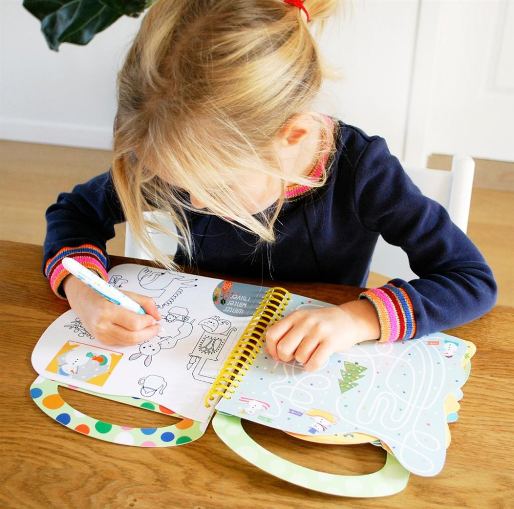 Színezd ki a fehér képeket a vizes ecset segítségével, mely a könyv spirálfűzéses oldalában található. A játékhoz nem kell festéket használnod! A kép amikor megszárad, visszafehéredik így újra és újra kiszínezheted a "varázstolladdal".